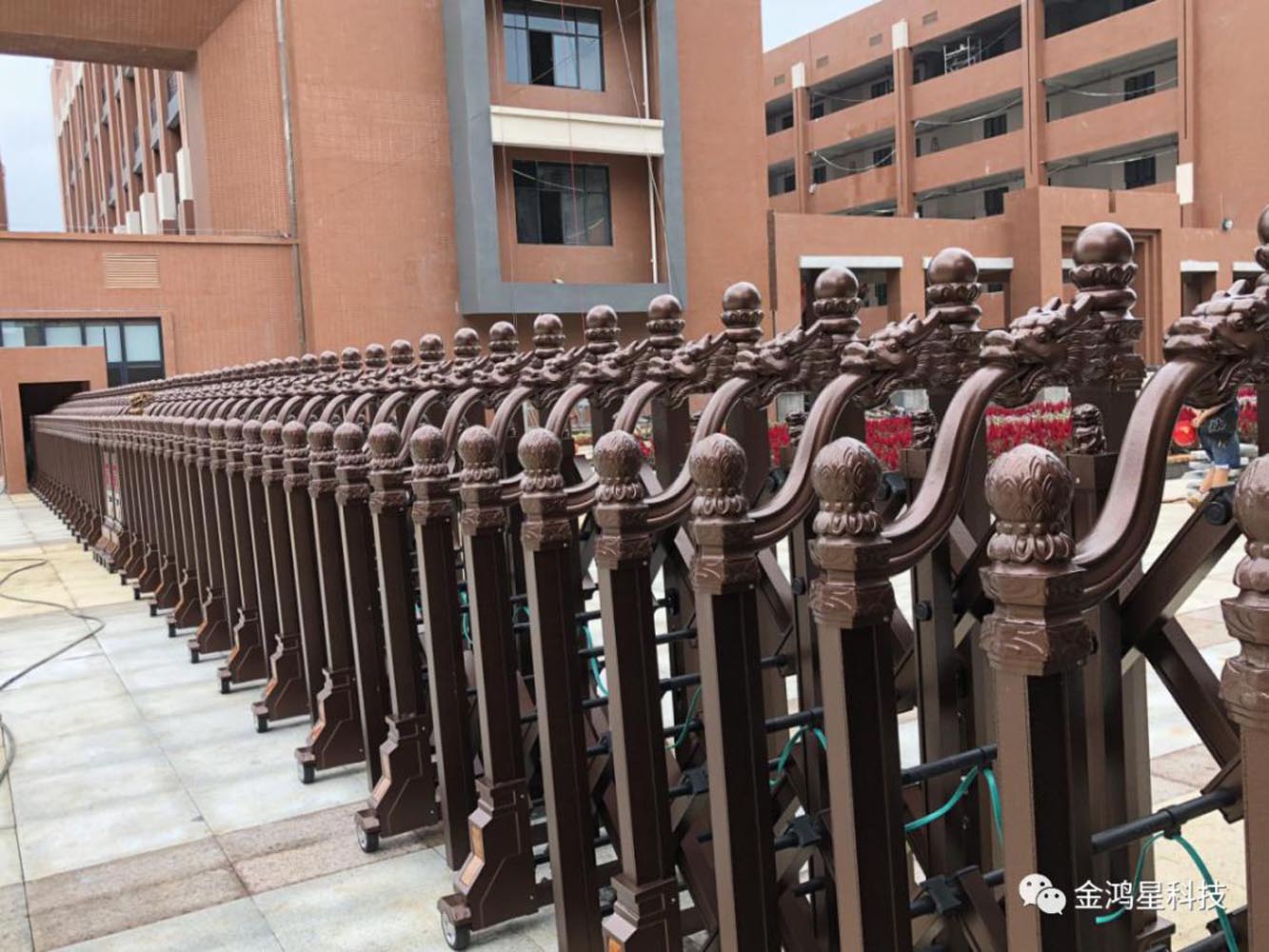 金鴻星龍韻393A以中國特有龍的形式,通過復雜多變的工藝結(jié)構(gòu)造型,將中國人的龍文化理念容入到現(xiàn)代伸縮大門的產(chǎn)品中,讓建筑大門彰顯濃郁的中國式的千年文化傳承,提升整個校區(qū)的中國元素。