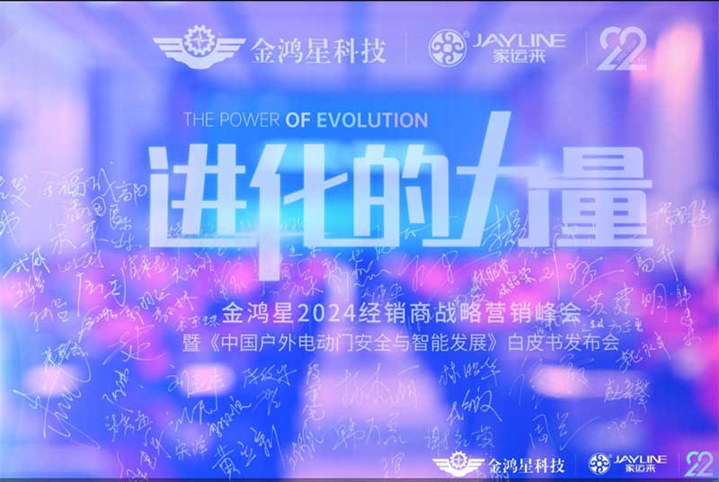 于高山之巔方見大河奔涌,于群峰之上更覺長風(fēng)浩蕩,金鴻星2024年全國經(jīng)銷商戰(zhàn)略營銷峰會暨《中國戶外電動門安全與智能發(fā)展》發(fā)布會圓滿成功!創(chuàng)輝煌,千里之行始于今朝;踏征程,萬里揚帆再啟航;乘八面之風(fēng),應(yīng)萬眾期待;不負青春,不負韶華;感恩遇見,同心同行。