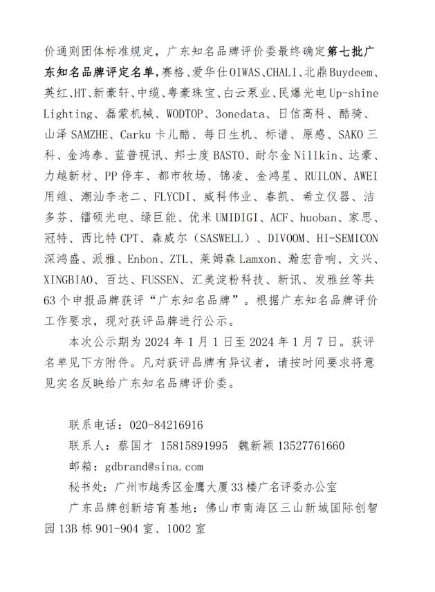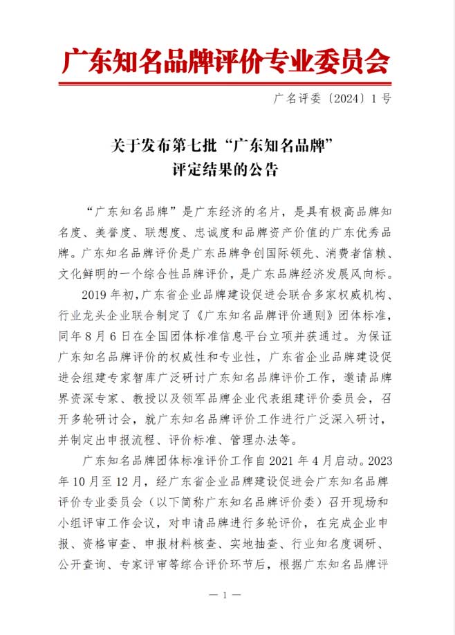 本次評(píng)選,是在完成企業(yè)申報(bào)、資格審查、申報(bào)材料核查、實(shí)地抽查、行業(yè)知名度調(diào)研、公開查詢、專家評(píng)審等綜合評(píng)價(jià)環(huán)節(jié)后,根據(jù)《廣東知名品牌評(píng)價(jià)通則》團(tuán)體標(biāo)準(zhǔn)規(guī)定,廣東知名品牌評(píng)價(jià)專業(yè)委員會(huì)最終審核認(rèn)定廣東金鴻星智能科持有限公司為第七批“廣東知名品牌”, 此次榮獲“廣東知名品牌”,是對(duì)廣東金鴻星智能科技有限公司的創(chuàng)造力、創(chuàng)新力、產(chǎn)品力、貢獻(xiàn)力、品牌影響力的綜合肯定,也是對(duì)廣東金鴻星智能科技有限公司作為戶外電動(dòng)門行業(yè)引領(lǐng)者的示范帶動(dòng)作用的高度肯定。