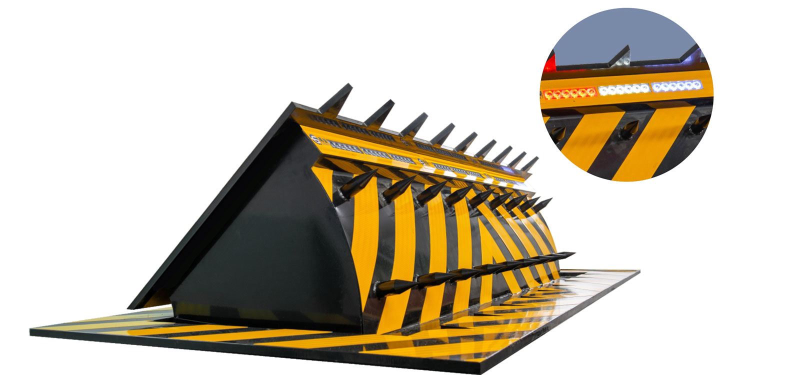 液壓翻板路障機(jī)(也稱防恐墻或道路阻斷器)-一分為標(biāo)準(zhǔn)型和輕型兩種,均果用液壓升降。其主要作用是為部隊(duì)、監(jiān)獄、道路卡口、倉庫、碼頭等重點(diǎn)防范部門提供安全保障,防止非允許車輛強(qiáng)行闖入,且有很高的實(shí)用性、可靠性及安全性。配備緊急釋放系統(tǒng),遇到停電等緊急情況時(shí),可人為降下,以開放通道